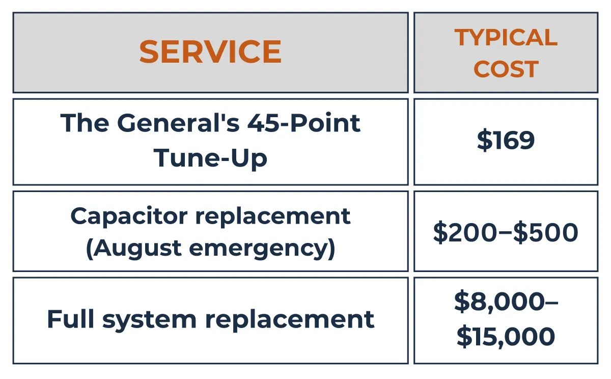 · Capacitor testing · Airflow · Electrical components · System performance while running